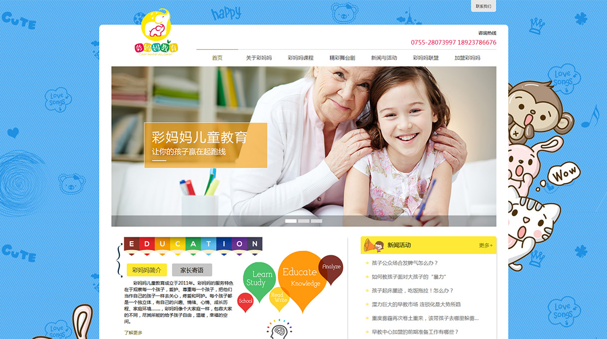 彩媽媽兒童教育成立于2011年。彩媽媽的服務特色在于觀察每一個(gè)孩子,愛(ài)護、尊重每一個(gè)孩子,把他們當作(zuò)自己的孩子一樣去關心,疼愛(ài)和(hé)呵護。